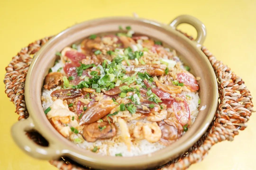 放了凤尾鱼籽干的煲仔饭格外受食客喜爱,掀开锅盖的瞬间热气升腾,凤尾鱼籽干、虾干、𧒽干、腊肠等味道渗入米饭当中,鲜香四溢。
