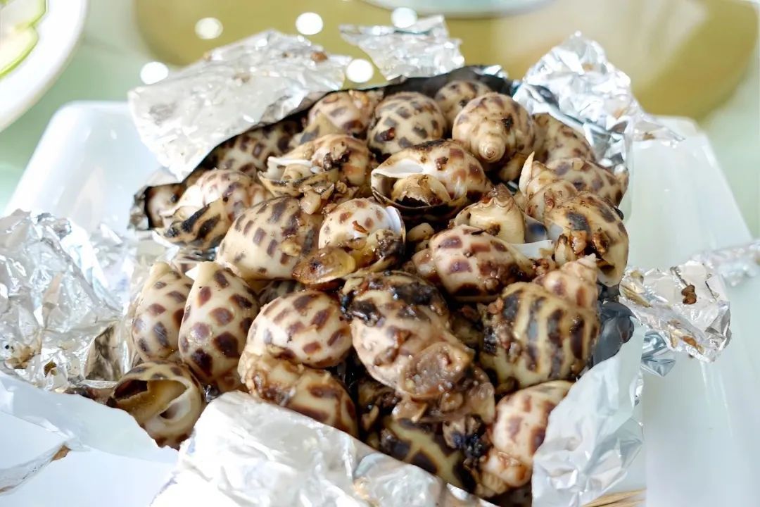 以猛火逼出咸香,用粗盐颗粒裹挟海潮气息渗入螺肉,螺壳焦脆带有咸鲜香,螺肉弹牙紧致。